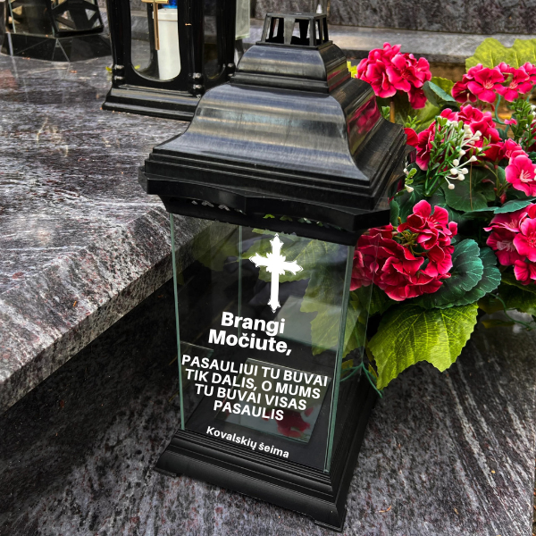 Personalizuota kapų žvakė su užrašu Močiutei – „Pasauliui buvai dalis…“